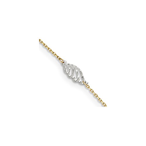 Roy Rose Jewelry 14K Two-tone Gold Diamond-cut Polished Leaf w/ 1'' extension Anklet ~ Length 10'' inches