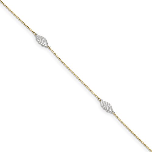 Anklet Type: ThemedMaterial: Primary: GoldMaterial: Primary - Color: Two-ToneMaterial: Primary - Purity: 14KFinish: PolishedChain Length: 10 inClasp /Connector: Lobster (Fancy)Extender Length: 1 in