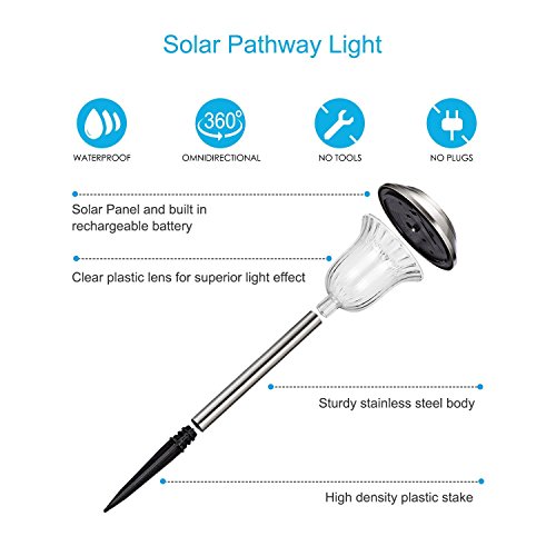 Solar Pathways Lights Makes Garden Path & Flower Beds Look Great; D-Runze 4PCS Stainless Steel Path Lighting, Easy NO-WIRE Installation;Any-Weather/Water-Resistant