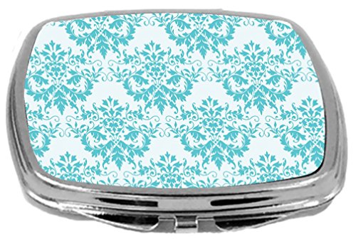 Rikki Knight Compact Mirror, Shabby Chic Blue Damask