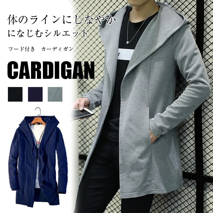 | 商品名 | カーディガン ニット メンズ ボタンなし ミディアム丈 フード付き カジュアル アウター 羽織 コード 定番 トップス 大きいサイズ |