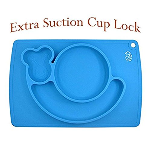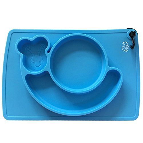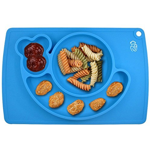 -. Title : Silicone Children Placemat+3 Compartments Plate for Kids Babies Child Toddlers Food+Meal+Dining Table+Feeding+Prep NonSlip Mat Portable Travel Snail+FDA Approved+Microwave Safe Suction(Blue)Kidwand