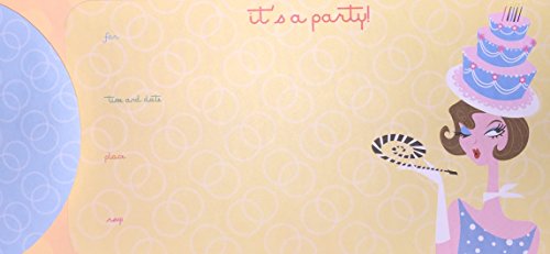 (24) Retro "It's a Party!" Cake Hat Fill In Invitations - 24 Single Panel Invitation Cards and Decorated Envelopes