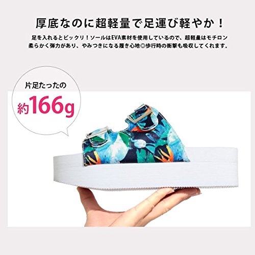 -. Feature : 【カラー】ホワイト / シルバー / ブラック / ボタニカル / 【サイズ】S(23.0cm) / M(23.5cm) / L(24.0cm) / LL(24.5cm) / 【採寸 S/M/L/LL】甲幅:14cm/14.2cm/14.4cm/14.6cm / 底幅:9cm/9.2cm/9.4cm/9.6cm / 重量166g(L片足で計測) / ソール:5cm / 【備考】ベルト5段階調節可能 【素材】アッパー:合成皮革 / 底:EVA / 【生産国】中国