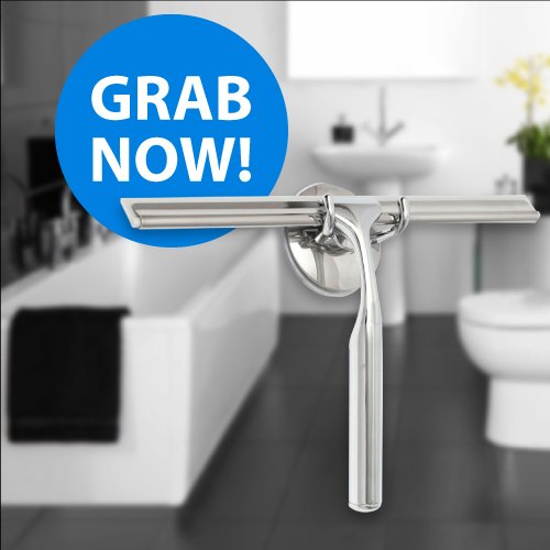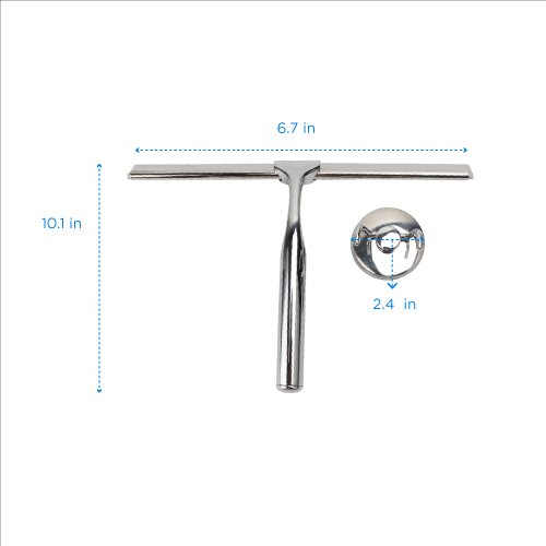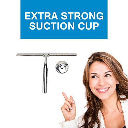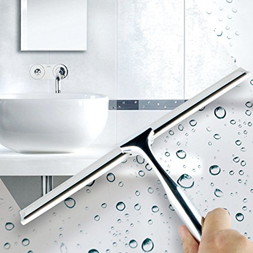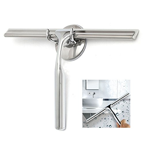 Top Squeegee | All-purpose Shower Window Wiper Cleaning Scrubber with Flexible Blade Anti-slip Handle and Suction Cup Wall Bracket | Durable Stainless Steel for Glass Mirror Door Tiled Surface | 1319