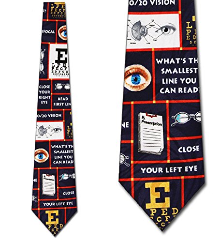 Binding : Apparel Product Description This fun and simple Optometry Squares Mens Necktie features an allover repeat collage design of different optometry tools and symbols. The tie depicts eyes, glasses, eye charts, prescription papers and multiple different, eye doctor phrases. All of this is contrasted against a navy background. This Optometry mens necktie is the perfect addition to any necktie collection and is a great gift for friends, family, and your favorite eye doctor! 0