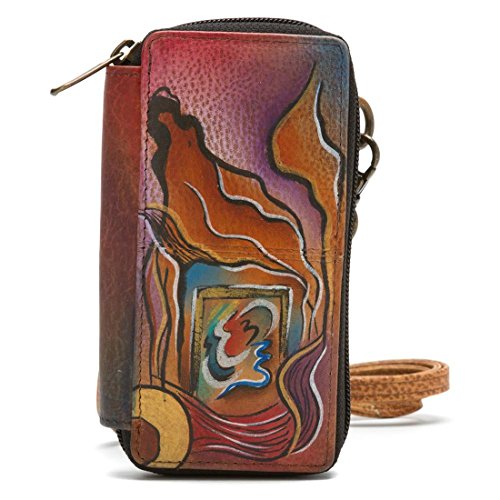 -. Feature : Exterior dimensions: 6'' x 3'' / Handmade, hand-painted leather / Exterior cell phone pocket with snap closure / Full zip entry / Detachable strap with 22'' drop