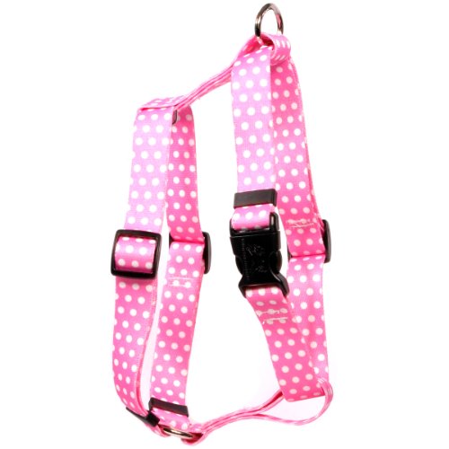 Studio : Yellow Dog Design Publisher : Yellow Dog Design Binding : Misc. Product Description This is the New Pink Polka Dot Roman Style "H" Dog Harness - Size X-Small - 3/8 Inch Wide and fits Chest Circumference of 8 to 14 inches from Yellow Dog Design, the roman, or "H", harness is perfect for dogs with necks that are larger than their head or dogs that pull. Made right here in the USA and provides more control without a choking effect. SIZING: This dog harness utilizes a quick clasp closure, also called a side release clasp. Sizing is given as a range of chest widths. Measure your dog around the widest part of its chest, usually just behind the front legs. If you are shopping for designer, affordable dog accessories, then look no further. These durable, guaranteed to last dog products have no rough edges, no threads to fray or break, no problem going in the wash, and no stress getting them on or off your dogs. 0