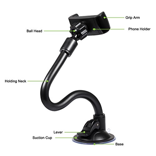 Amoner Car Mount Holer, Universal Windshield Long Arm Phone Holder with Extra Supporting Base for iPhone 7 /7plus, 6/6s, Samsung Galaxy / Note, HTC, LG, Nexus, Nokia, and All Smartphones 3.5-5.8 inch