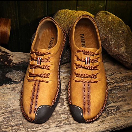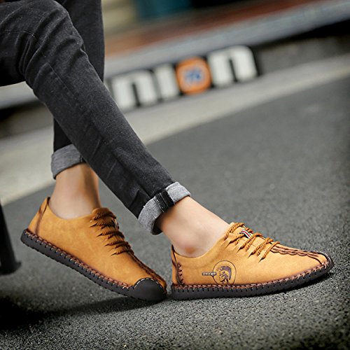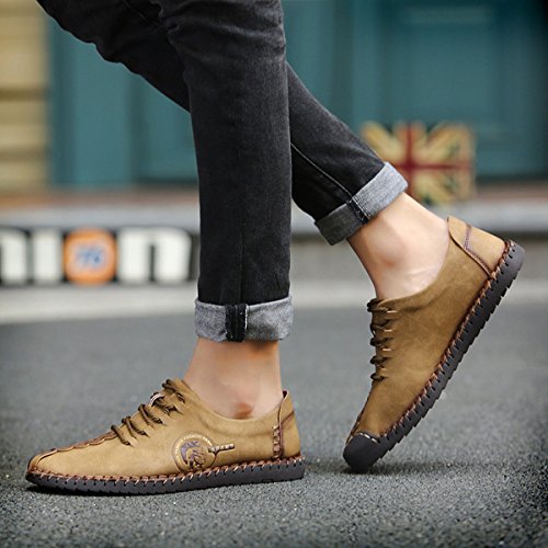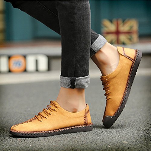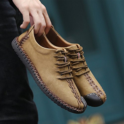 Binding : Apparel Product Description Parameter: Shoe Type: Casual Shoes Toe Type:Round Toe Closure Type: Lace Up Gender: Male Occasion: Casual,Daily Season: Spring,Summer,Autumn Color: Black, Taupe, Khaki Material: Upper Material: Microfiber Leather Outsole Material: Rubber Below it will help us choose right size for shoes. Size Chart : Our brand shoes 6D(M)US = EU38 = American standard size US/7 Our brand shoes 6.5D(M)US = EU39 = American standard size US/7.5 Our brand shoes 7.5D(M)US = EU40 = American standard size US/8 Our brand shoes 8D(M)US = EU41 = American standard size US/9 Our brand shoes8.5D(M)US = EU42 = American standard size US/10 Our brand shoes 9D(M)US = EU43 = American standard size US/10.5 Our brand shoes 10D(M)US = EU44 = American standard size US/11 Our brand shoes 10.5D(M)US = EU45 = American standard size US/12 Our brand shoes 11D(M)US = EU46 = American standard size US/13 Package Included: 1 x pair of shoes(without box)
