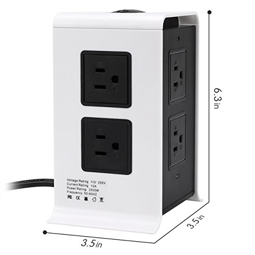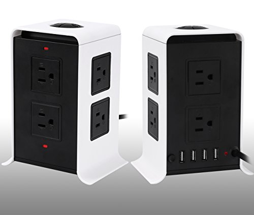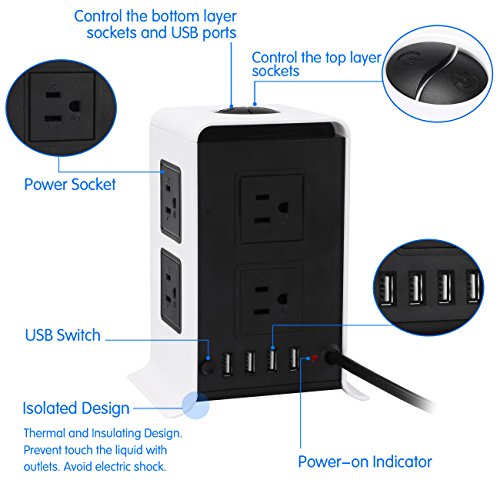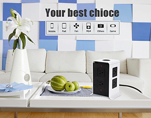 JBonest 8 Outlet 4 USB Outputs Vertical Multi Socket with Overload Protector for Home/Office,Including Power Cord
