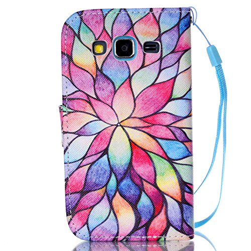 Galaxy Core Prime Case,JanCalm [Wrist Strap Design][Kickstand] Pattern PU Leather Wallet [Card/Cash Slots] Flip Cover for Samsung Galaxy Core Prime*Including-ONE Crystal Pen (Water lily)