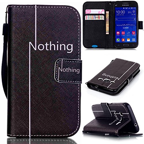 WALLET Style - Included 2 Card Slots And Money pocket - Carry around your ID, credit or debit cards, and cash without having to take your wallet with you.Built-in magnetic for secure closure.Stylish PU Leather Wallet Case for Samsung Galaxy Core Prime.Detachable Wrist strap for carrying convenience
