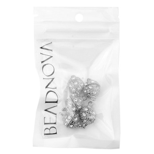 BEADNOVA Silver / Gold Plated Crystal Rhinestone Pave Magnetic Beads Clasp for Bracelet Necklace Jewelry(12mm Silver Plated Clear Crytstal)