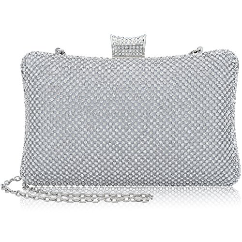 -. Feature : [Material]--Top grade clear rhinestone A which is very dazzling like a diamond or gemstone, no blemishes. Silver plating hardware which was carefully selected, no scratch, no rust on the surface. high quality satin lining. / [Chain]--with 1pcs detachable O chain (length at 120cm). you can wear it as shoulder/crossbody strap, or clutch/minaudiere in hand. / [Specification]--20cm (L)*6cm(W)* 14cm(H), Large capacity, it can hold Iphone6S/7 plus (it is ok to fit 2 big phones), or glasses, lipstick, cash, key, cards, small compact/mirror etc. / [Features]--Crystal closure which is easy to open & close, also keep your personal stuff safe. Classic pillow shape which is the perfect bag to match your charming jewelry, evening shoes and dress. / [Occasions]--cocktail/birthday/prom/wedding party, baby shower, Engagement, Social Activities, nightclub or night out. Great gift for bridal, bridesmaid, women, ladies etc.