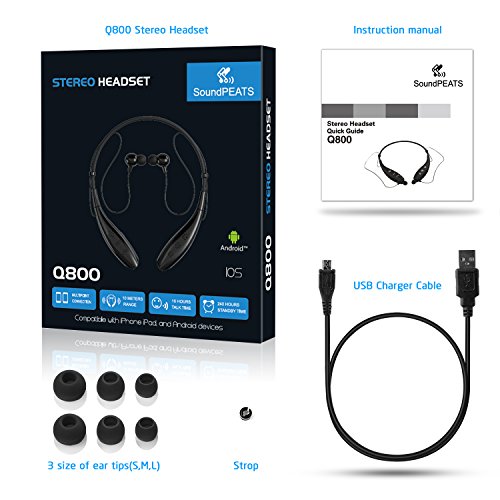 Title : Bluetooth Headphones SoundPEATS Bluetooth Sport Earbuds Neckband Wireless Headset with Mic (10 Hours Play Time, Bluetooth 4.1, Sweatproof)-Black