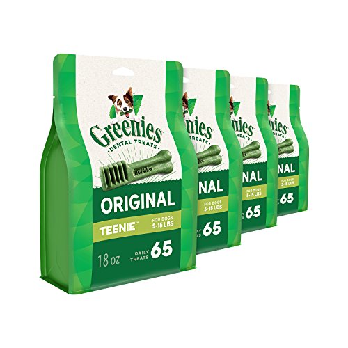 Greenies Dental Dog Treats, Teenie Size, Original Flavor (65 Treats, 18 Ounces) Greenies Dog Dental Chews: For Clean Teeth and Healthy Gums