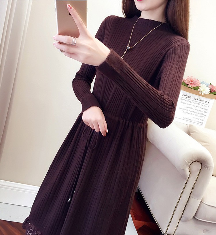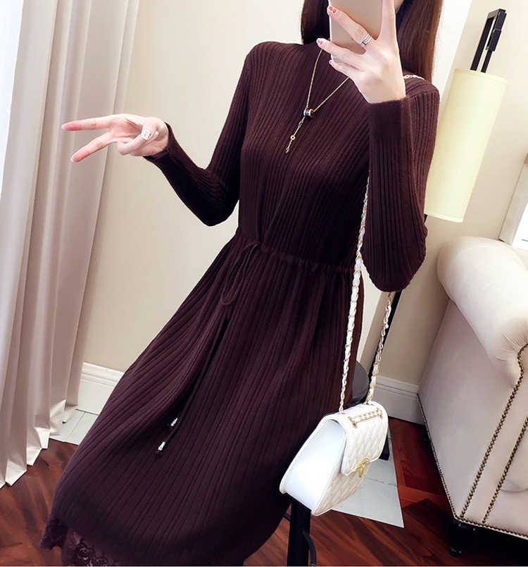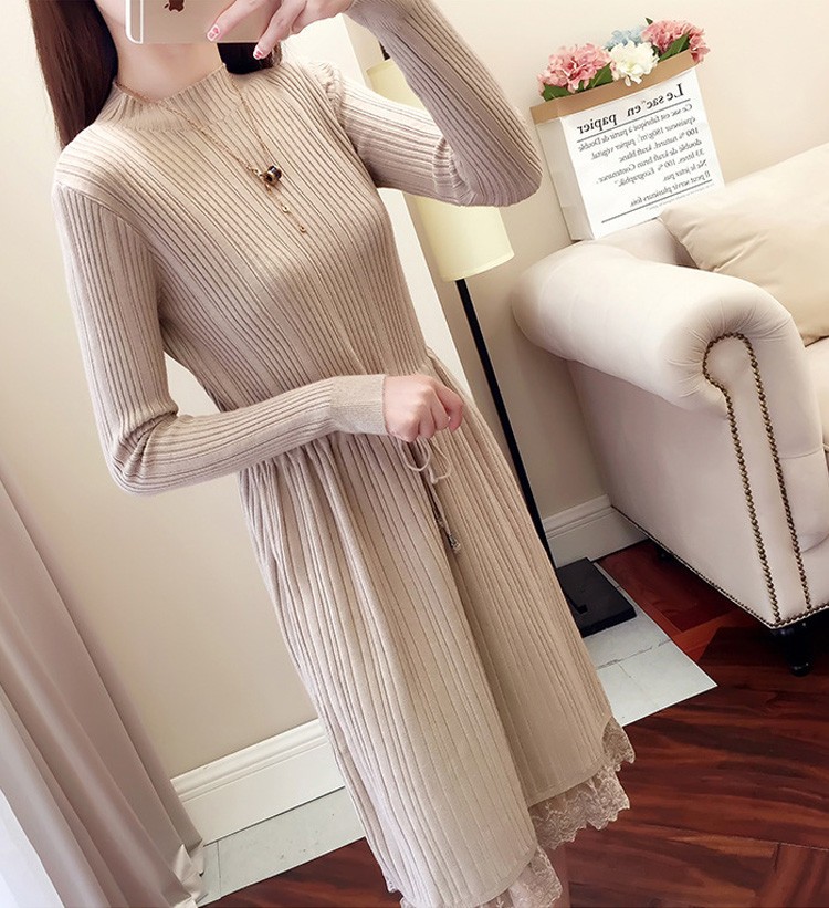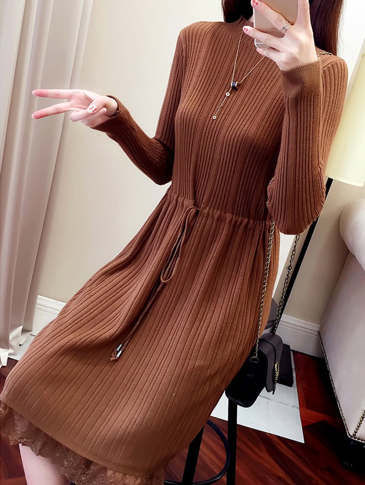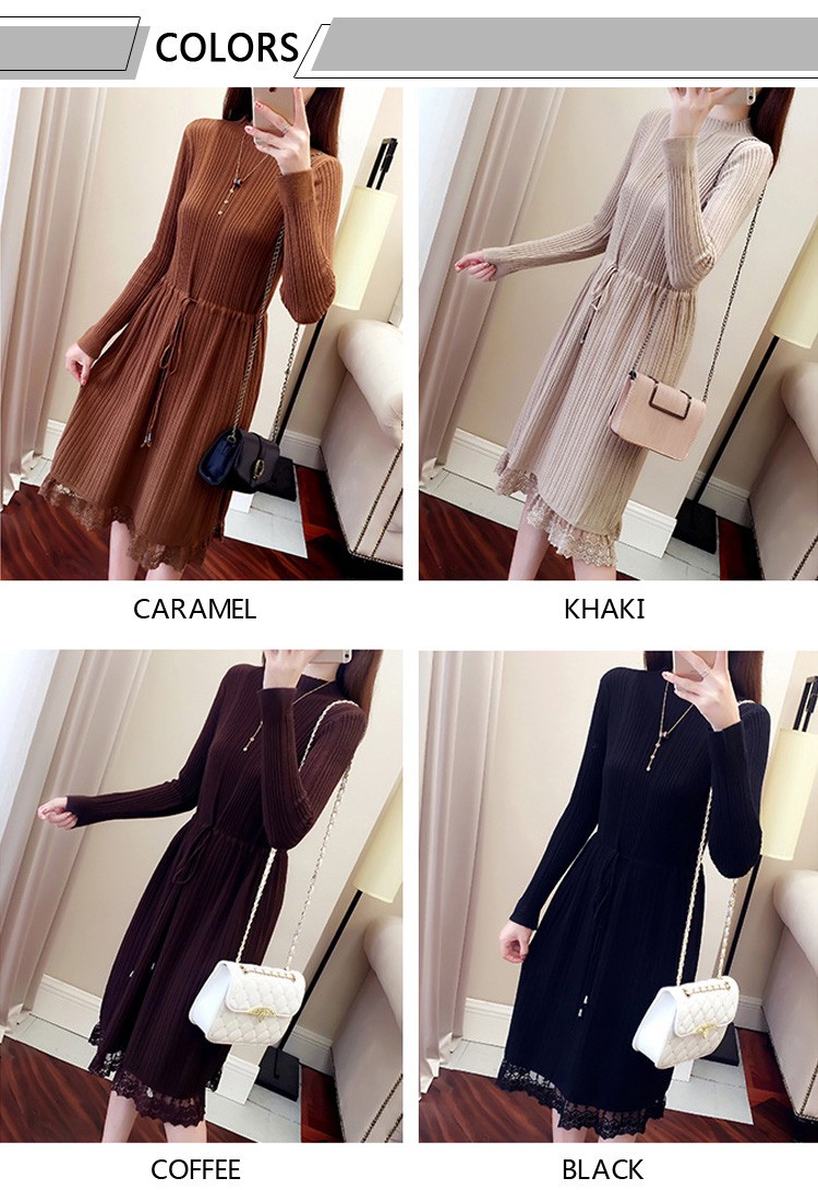 レース レディースワンピース 膝丈ワンピ レディース 秋冬服 おしゃれ ニットワンピ ロング丈 着痩せ 4色 シンプル 通勤カラー:キャラメル カーキ コーヒー ブラックサイズ:S/M/L/XL素材:ポリエステル