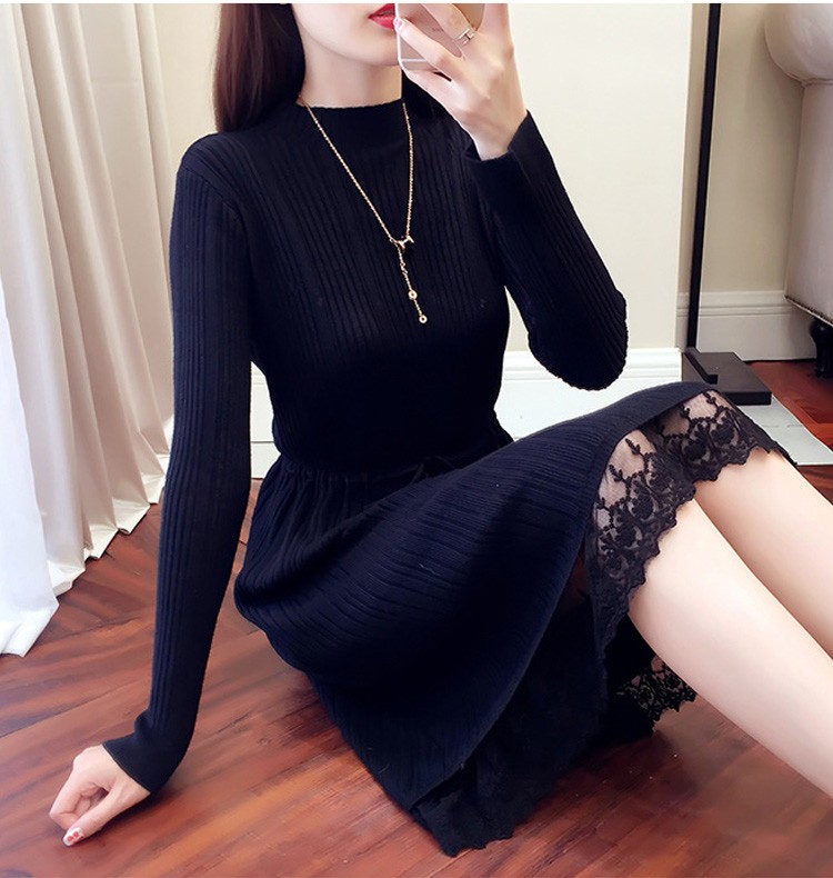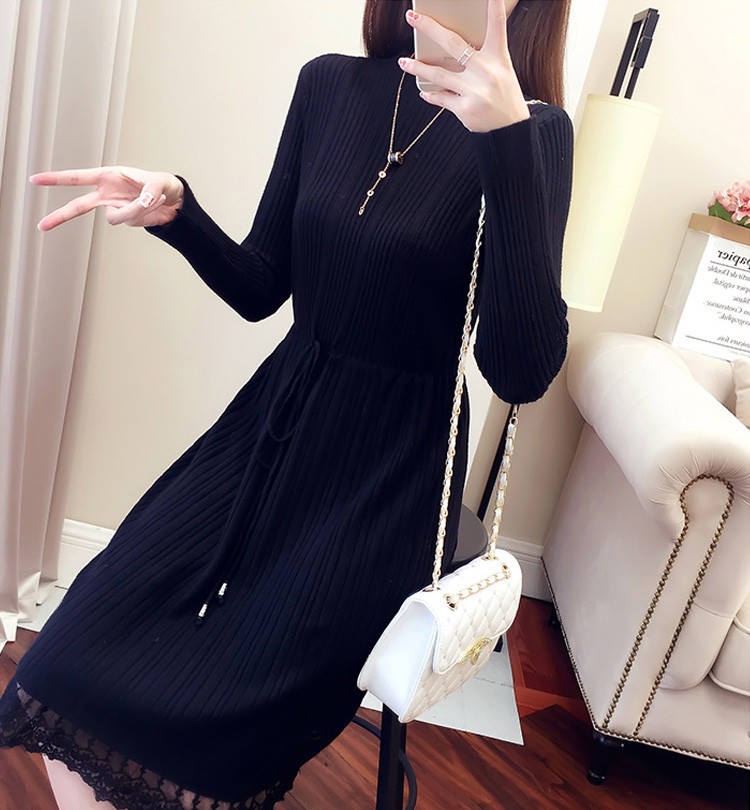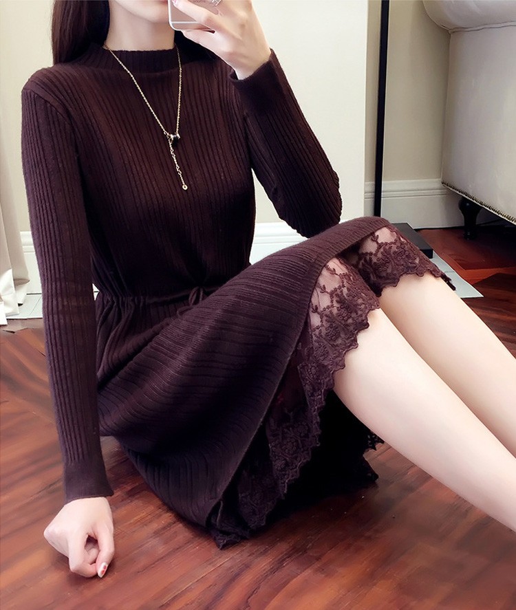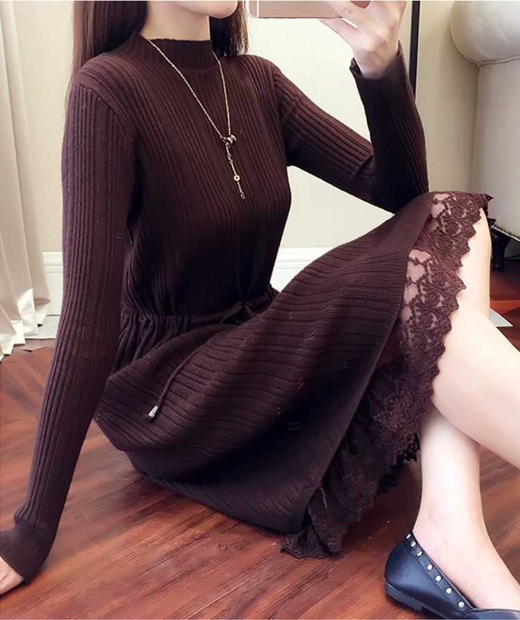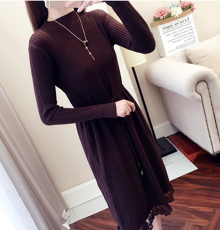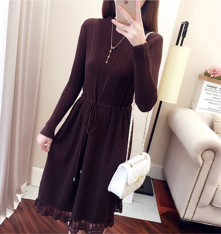レース レディースワンピース 膝丈ワンピ レディース 秋冬服 おしゃれ ニットワンピ ロング丈 着痩せ 4色 シンプル 通勤カラー:キャラメル カーキ コーヒー ブラックサイズ:S/M/L/XL素材:ポリエステル