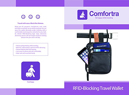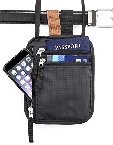 Product Description Keep your ID, passport, smartphone, cash, cards and other essentials secure while traveling. You can wear this wallet discreetly under clothing, with a comfortable neck lanyard or attached to your belt. Its interior RFID-blocking layer stops electronic skimming and its soft yet tough moisture-wicking exterior lets you wear it all day.