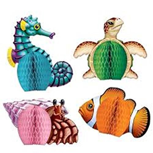 ReleaseDate : 2013-07-28 Studio : The Beistle Company Publisher : The Beistle Company Binding : Kitchen Product Description Beistle 50449 Sea Creatures Playmates (4 Count). These sea creature playmates are colorful and fun for a luau party! The package includes a sea turtle, hermit crab, clown fish and seahorse. They are made of board stock with tissue inserts. The sea creature playmates measure 51/2 Inch tall. 0