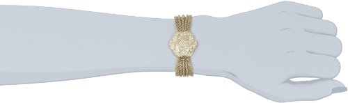 - Feature : 20 mm round, covered case in polished gold-tone finish / Hinged, flower shaped case cover set with 109 genuine Swarovski crystals and small round mirror on inside / Stainless-steel mesh bracelet with adjustable end links, jewelry clasp closure and extender / Champagne sunray dial with 12 gold-tone pearling; gold-tone hour minute and second hands / Water resistant to 99 feet (30 M): withstands rain and splashes of water, but not showering or submersion