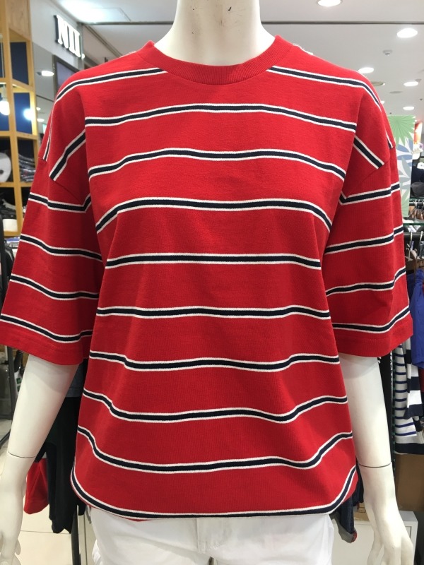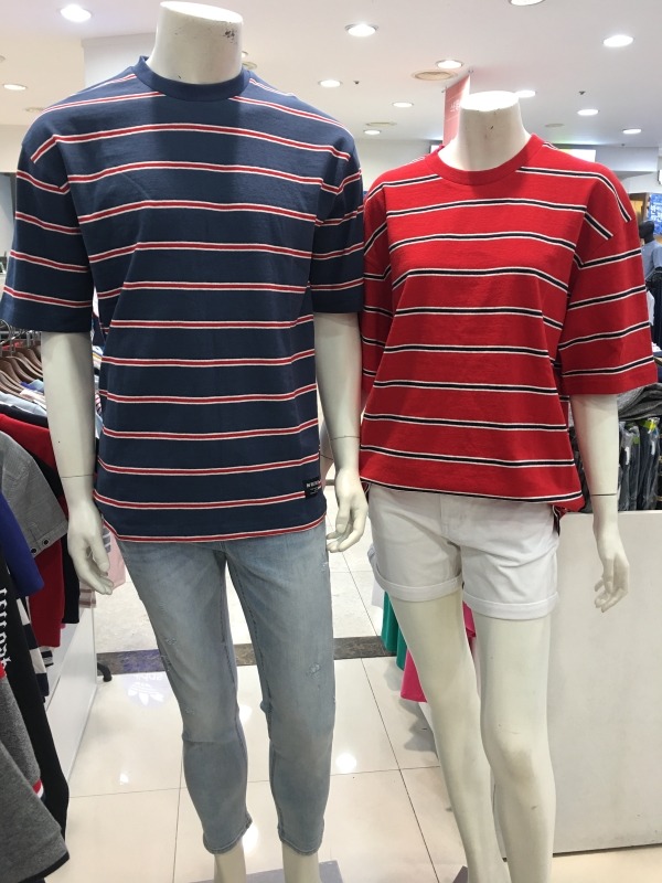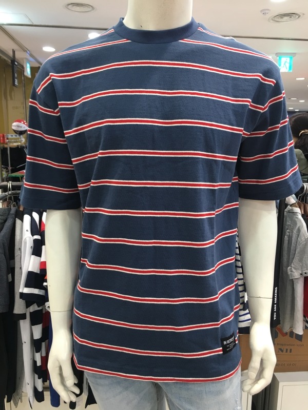 유니크한 컬러의 스트라이프 티셔츠청바지나 어디에 매치해도멋스러운 스타일연출가능