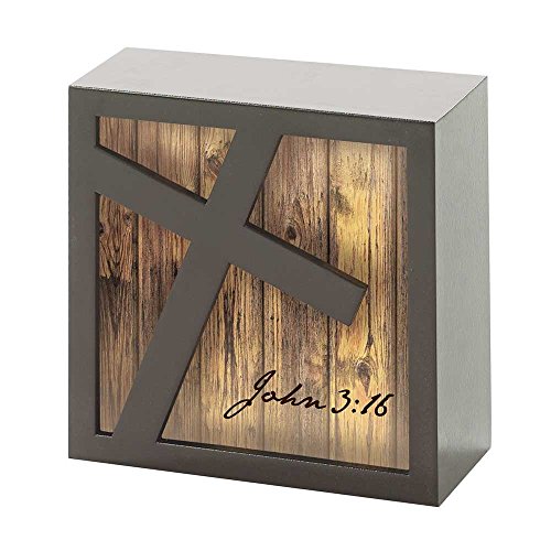 Plank Wood Cross John 3:16 Weathered Wood 3.5 x 3.5 Wood Table Top Sign Plaque