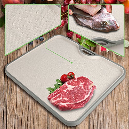 Anti-Overflow & Non-Slip: With anti-overflow section which is 0.6 inch height,and wrapped with TPR rubber, effectively keep it from sliding around when cutting.