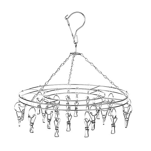 - Sturdy Construction: Consummate Welding Technology + High Quality Stainless Steel Material+ High Stretch Clips. This metal drying rack is built with trickened stainless steel and welded by 4-points technology, so it is very durable. Never be damaged under sun exposure or heavy wet clothes like plastic clip and drip hanger. 20 pcs of high stretch clips hold tightly without snagging clothes, never get mildewed like wooden one.