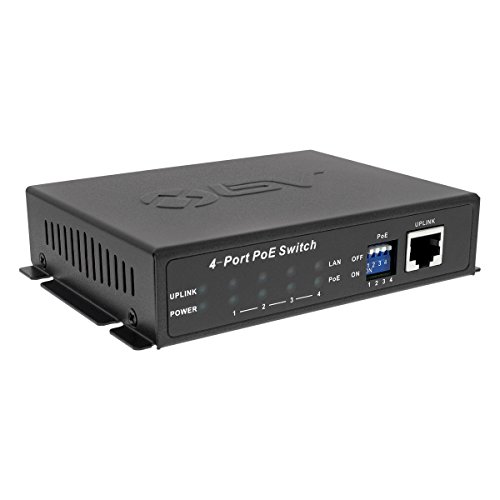 BV-Tech 4 Port PoE+ Unmanaged Switch with Ethernet Uplink – Dipswitches – 65W – 802.3af/at – POE-SW541E