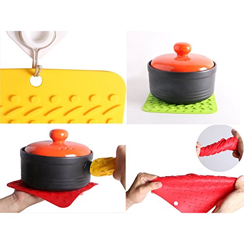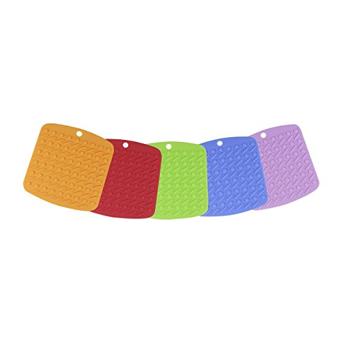 YEJI 5 Pcs food grade Silicone Insulation Mat?for kitchen Tableware Non-slip,Heat Resistant ,Drying, Flexible Potholders Square Insulation pads,safe, non-toxic. Heat resistant to 400 °