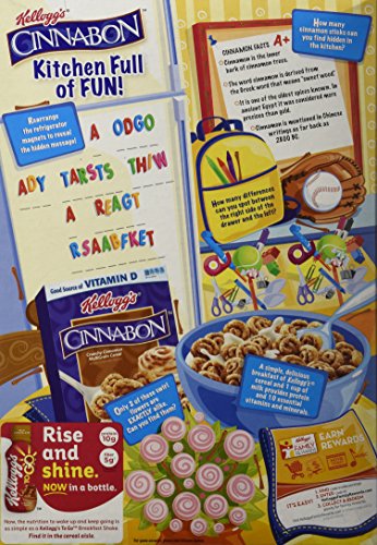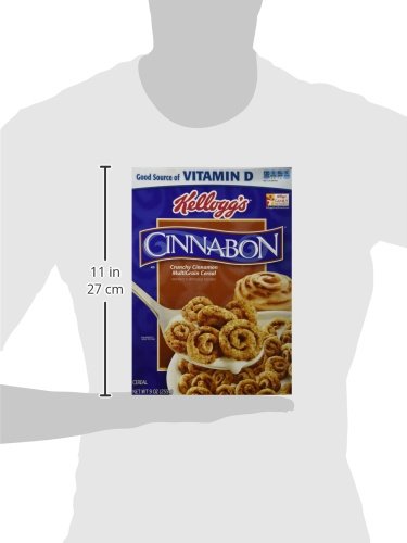 Feature : Pack of four, 9-ounce boxes of Kellogg's Cinnabon Cereal / Crunchy multi-grain cereal flavored with cinnamon / Fun, cinnamon roll shaped swirls that kids will love / Enriched with 11 essential vitamins and minerals / 100 calories per serving; zero trans or saturated fat; cholesterol free