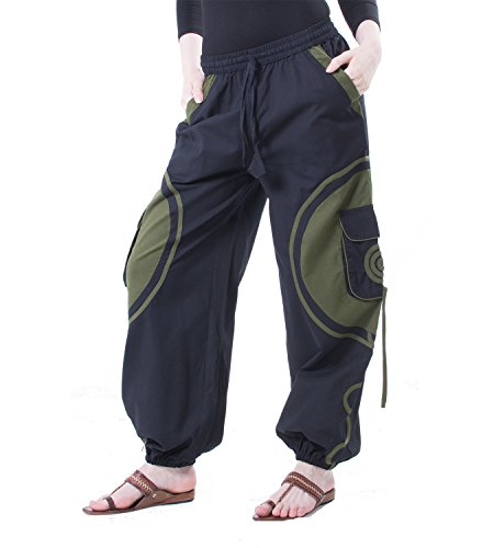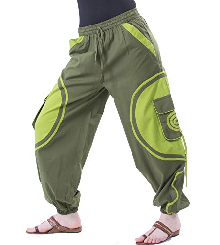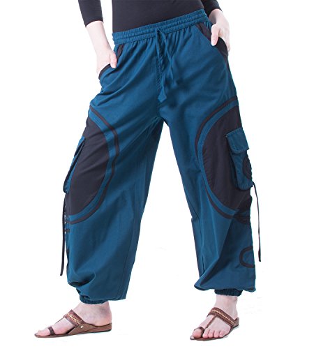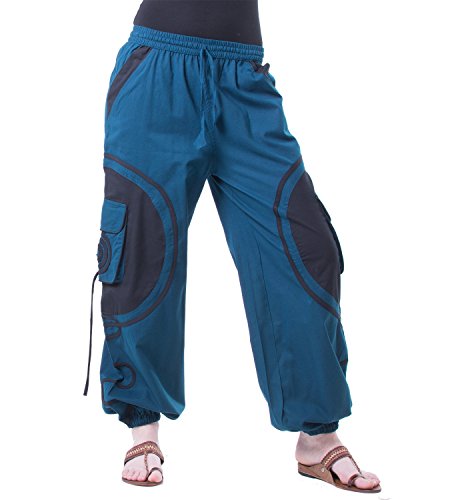 -. Feature : Goa Baggy Pants / Länge variabel durch Gummizug am Bein / Unisex (passend für Damen und Herren) / 2 Taschen / Dehnbarer Bund