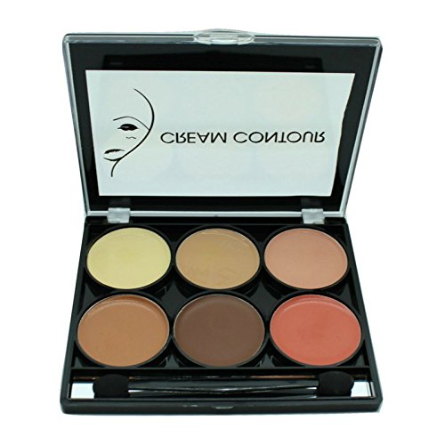 Celavi Contour and Highlight 6 Color Palette w/ Dual Headed Sponge and Built in Mirror Easy To Use Kit (Cream)