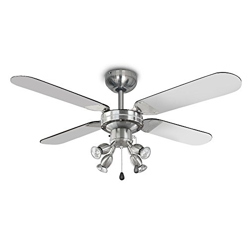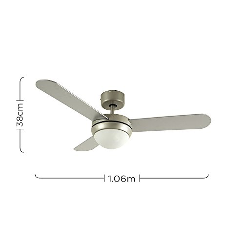 3 Geschwindigkeitseinstellungen. Er bietet einen richtungsabhangigen Motor (vorwarts und ruckwarts), so dass der Deckenventilator in kalteren und warmeren Bedingungen benutzt werden kann