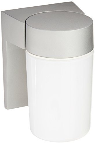 Nuvo Lighting SF77/136 Utility Fixture Die Cast Aluminum Durable Outdoor Wall Mount Porch and Patio Light with White Glass Cylinder, Satin Aluminum