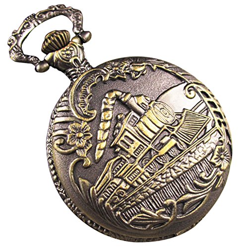 -. Title : YouYouPifa Classic Bronze Train Forward Pattern Embossed Big Pocket Watch
