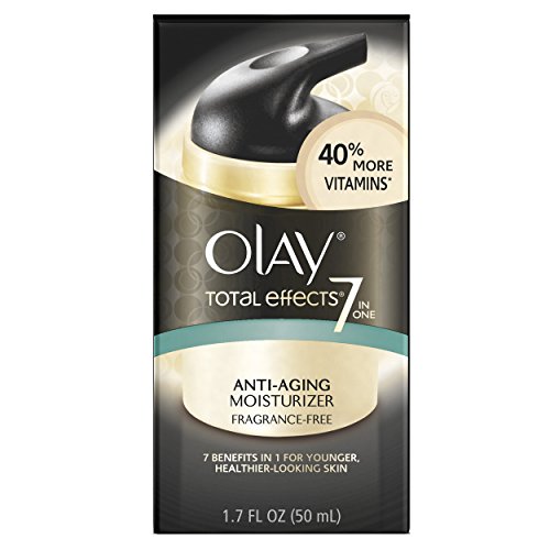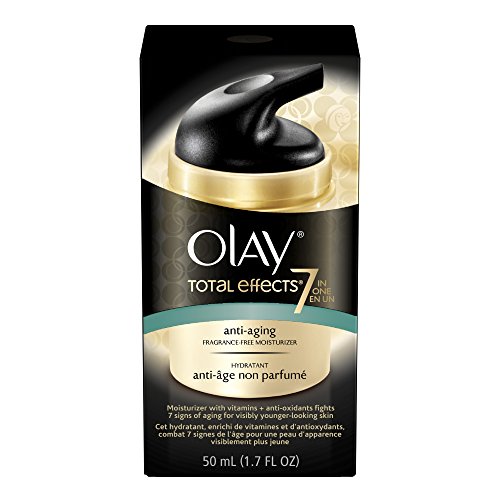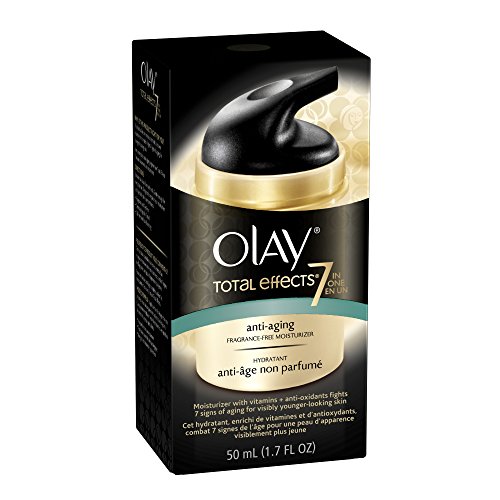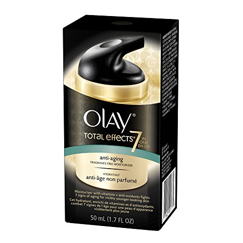 -. Binding : Misc. -. Feature : Total Effects fights 7 signs of aging fine lines and wrinkles, rough texture, uneven skin tone, dullness, prominent pores, age spots and dryness / Gentle enough for everyday use / Oil-Free. Fast-Absorbing. Dermatologically tested. Non-Comedogenic / Moisturizes to firm skin and reduce the appearance of fine wrinkles -. NumberOfItems : 1 -. ProductGroup : Beauty -. ProductTypeName : BEAUTY -. Title : Olay Total Effects 7-in-1 Anti-Aging Daily Moisturizer, 1.7 Ounce