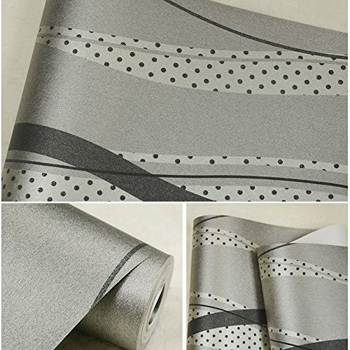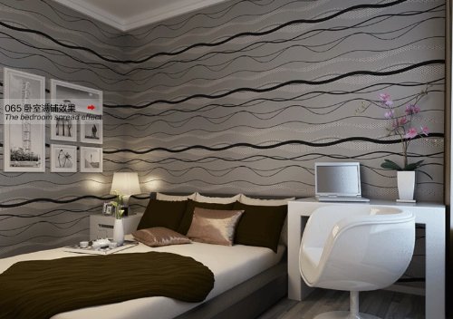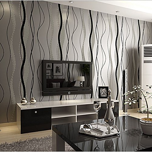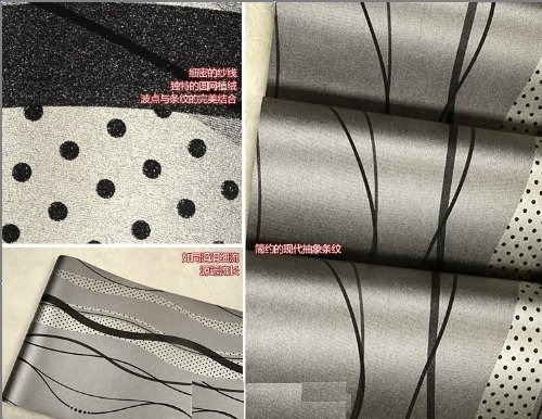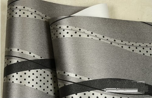 QIHANG High-grade Non-woven Flocking Simple Curve Style Wallpaper Roll Black&gray Color