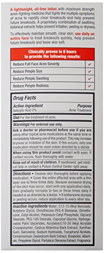 -. Feature : Oilfree lotion leaves skin soft And smooth / Visibly reduces breakouts in 8 hours / Helps prevent new breakouts / Salicylic acid acne treatment / Helps prevent new breakouts