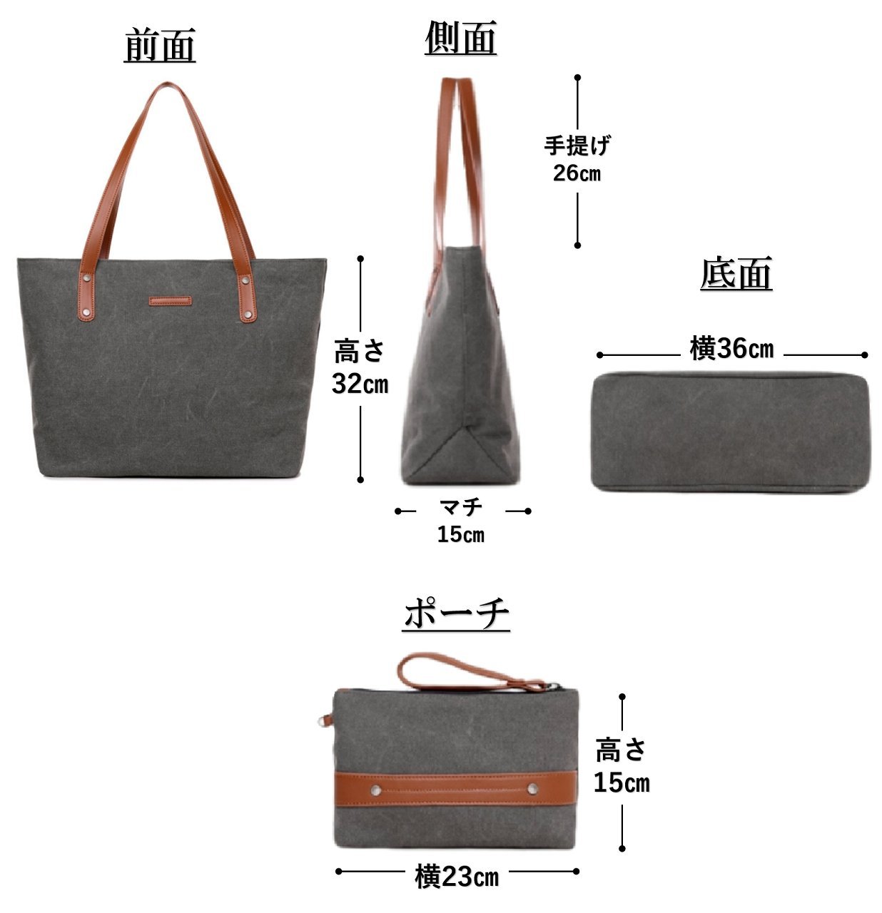 Main bag / height 32 cm × width 36 cm × width 15 cm