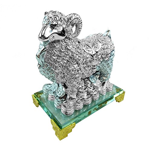 Hongville Traditional Chinese Feng Shui Decor Fortune Wealth Prosperity Decorative Statue, Silver Sheep