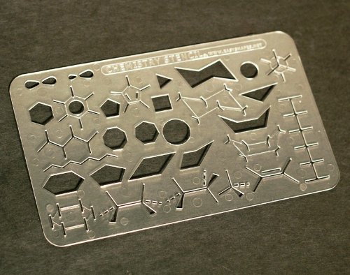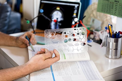 Introduction to Chemistry and Organic Chemistry are mandatory undergraduate courses taught in academic institutions throughout the world. These courses are required for chemistry students as well as for students studying other disciplines such as: biology medicine engineering pharmacy A major requirement in these courses is the knowledge of molecular structures and the ability to draw them. The Chemistry Stencil, is a drawing tool that was designed to help students acquire the intricate and precise skills required for the drawing of common molecular structures in organic chemistry, such as: Sp2 or Sp3 Orbital Cyclopentadienyl Cyclopentane 3d Sawhorse Projection Newman Projections Chair and Boat Conformation of Cyclohexane and many others. The variety of molecule shapes you can draw with the organic chemistry stencil is vast. the stencil is also great item to quickly and neatly draw the shapes. they come out in a good size and are proportional to each other. Dimensions: 4.1" x 6.8" x 0.04" The stencil is Made out of Polycarbonate, which means it has a high durability so that you can use it again and again without worries.Feature