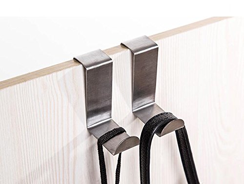 Home-organizer Tech Stainless Steel Reversible Over the Door Hook Removable Cubicle Coat Hook, Brushed Finish 6 Pack