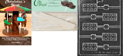 Cybrtrayd 'Building Blocks Lolly' Kids Chocolate Candy Mold with 50 4.5-Inch Lollipop Sticks and Chocolatier's Guide