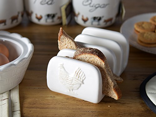 Farmers Market - Stoneware 4 Slice Toast Rack - Embossed Hen - Multi-Colour 토스터 토스터기