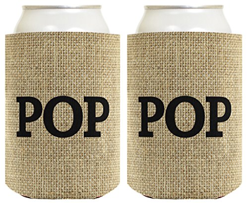 Father's Day Gift for Pop Burlap Pattern 2 Pack Can Coolie Drink Coolers Coolies Burlap
