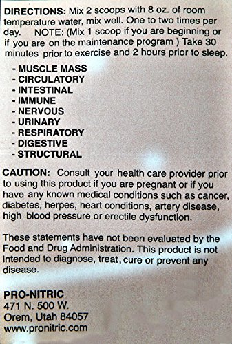 -. Binding : Health and Beauty -. Brand : by Performance Supplement Store -. EAN : 0852662693492 -. Feature : purest ingredients available MADE IN USA -. IsAdultProduct : 0 -. Label : performance supplement store -. Manufacturer : performance supplement store -. MPN : 17.3 -. PackageQuantity : 1 -. PartNumber : 17.3 -. ProductGroup : Health and Beauty -. ProductTypeName : HEALTH_PERSONAL_CARE -. Publisher : performance supplement store -. Studio : performance supplement store -. Title : ProNitric ( The original ) 5000 mg L Arginine plus 2000 mg L-Citrulline Nitric Oxide Formula 17.3 oz. -. UPC : 852662693492
