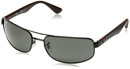 Ray Ban Men's RB3445 002/58 Black/Green, Polarized Aviator 61mm Sunglasses